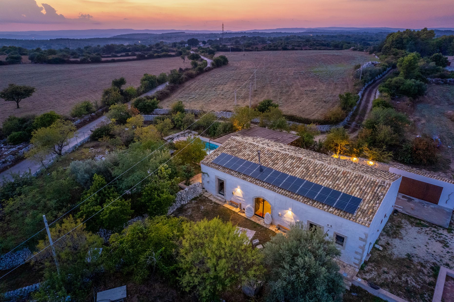 - Energy: Casa Balat runs mostly on self-produced energy, 10kW solar panels + batteries + geothermal heat pump (which was the first one installed in Sicily for a private estate)